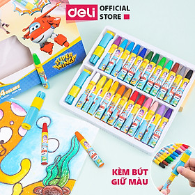 Bút sáp màu hữu cơ hỏa tiễn kèm Sticker Deli - 12/24/36 màu - An toàn không vấy bẩn tay Tô màu vẽ tranh học sinh trẻ em
